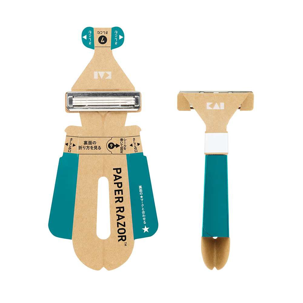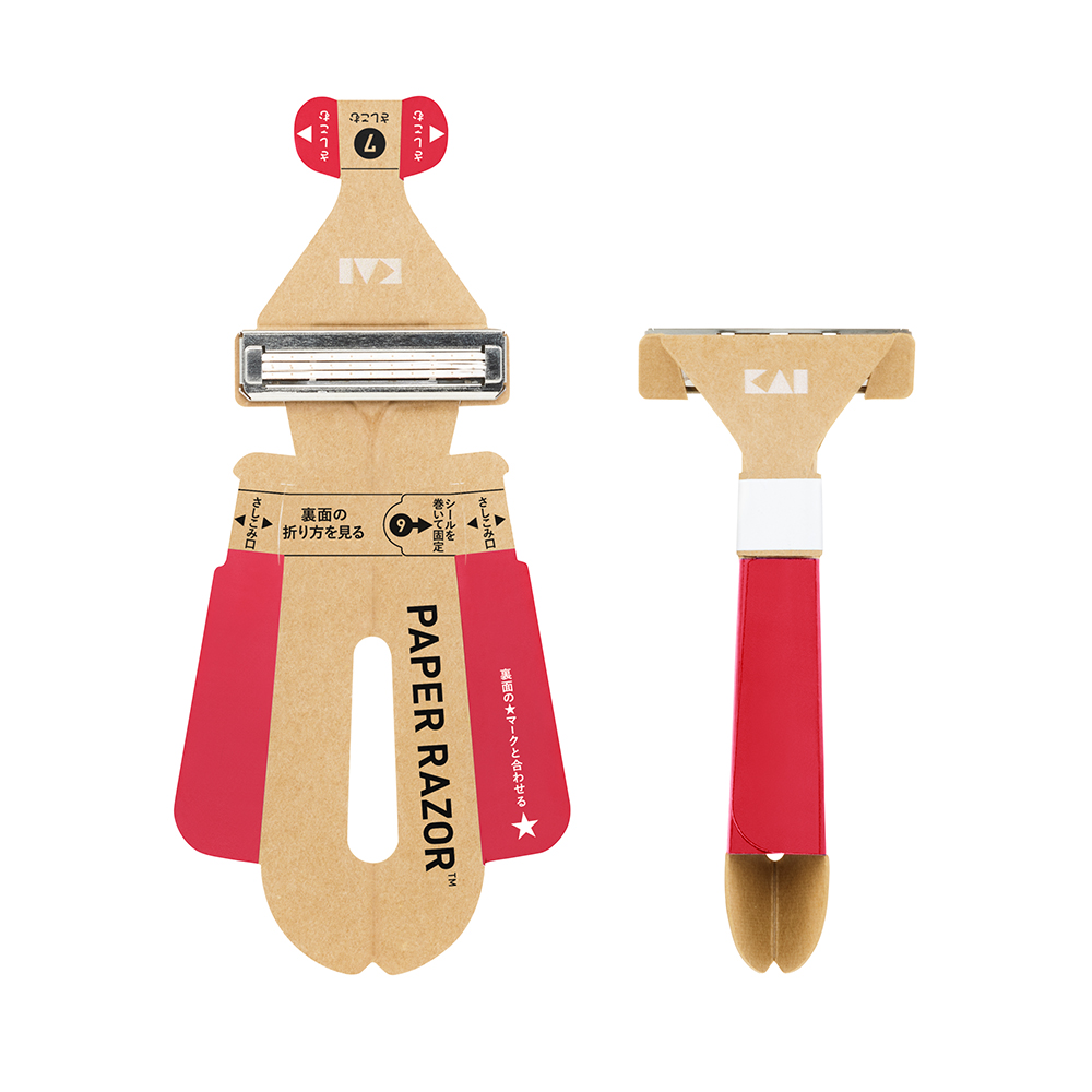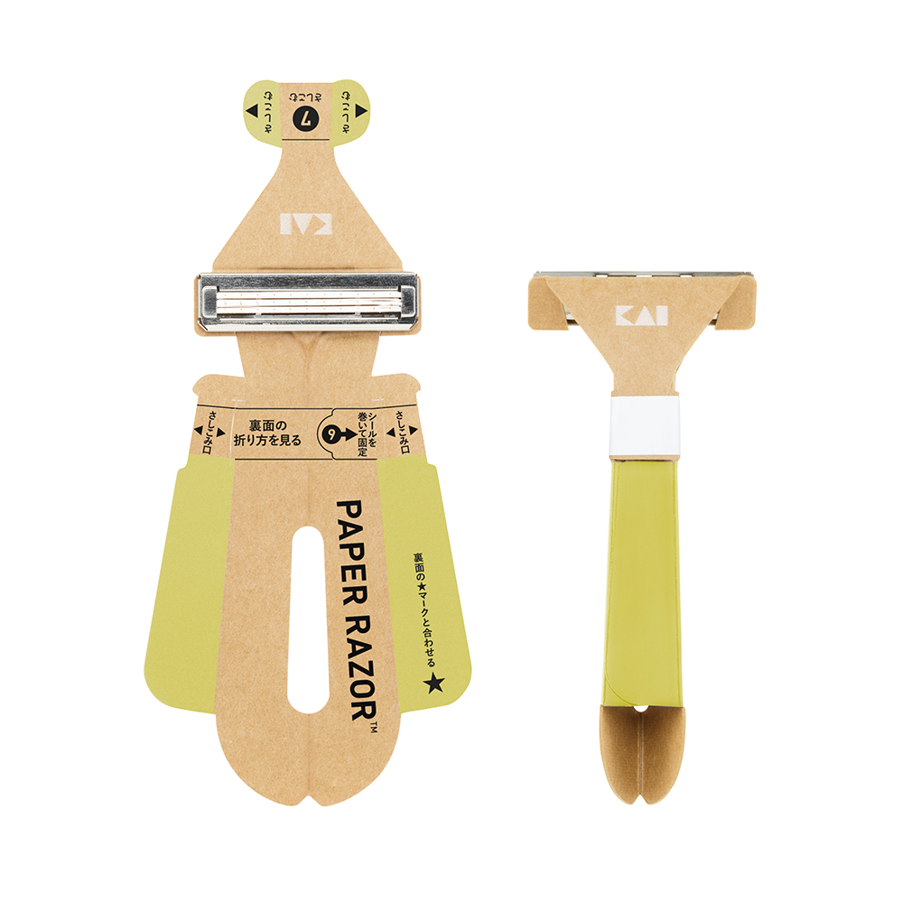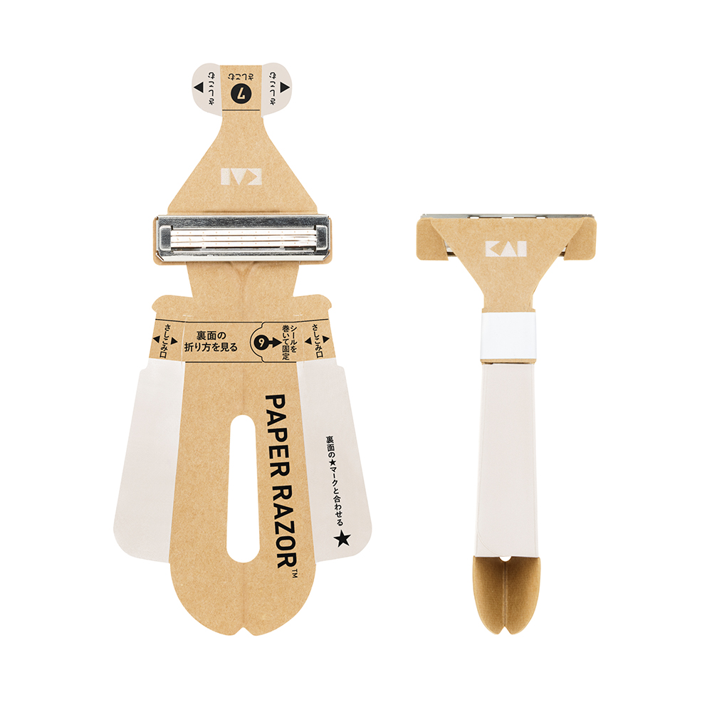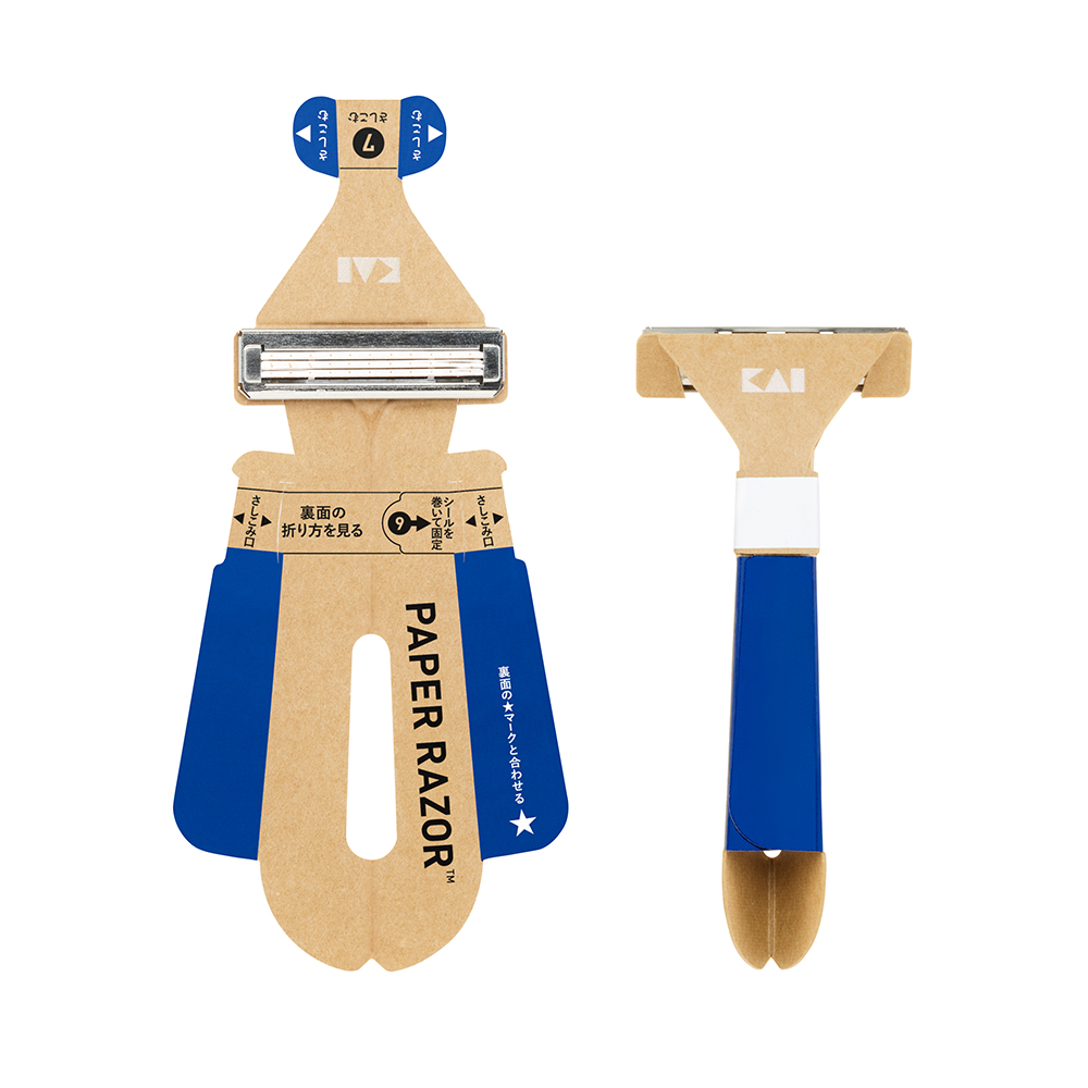 A paper razor uses paper for the handle and metal for the blade (including the head) to achieve “deplasticization” * and is used by assembling a piece of paper like origami.