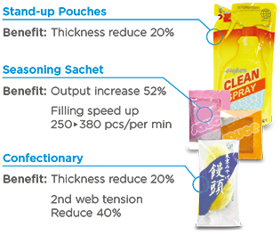 R-2000D offers high clarity, high drop resistance, excellent stiffness, and dimpling resistance for premium shelf appearance. R-2000D provides perfect directional tear without laser scoring, and R-2100D provides improved toughness for sharp products like nuts, pet treats, and pretzels. With superior heat resistance, R-2000D allows for optimal speeds, a wide operating window, and high filling efficiency.