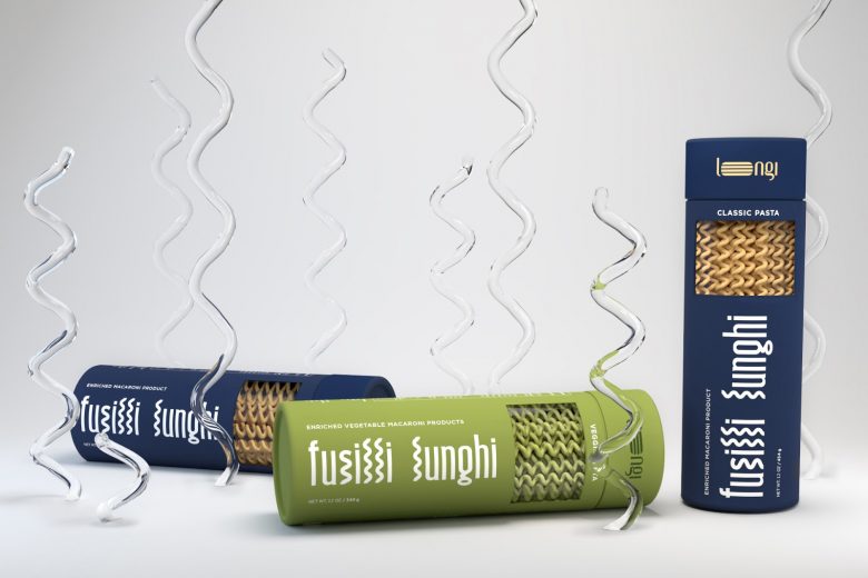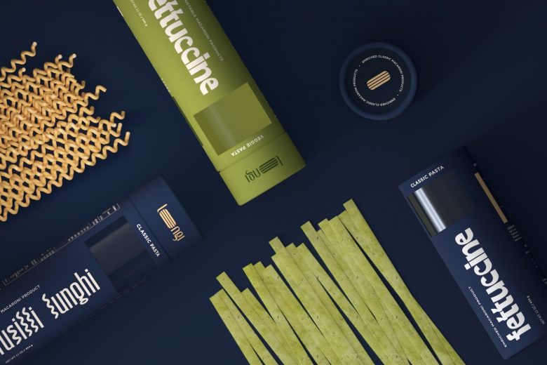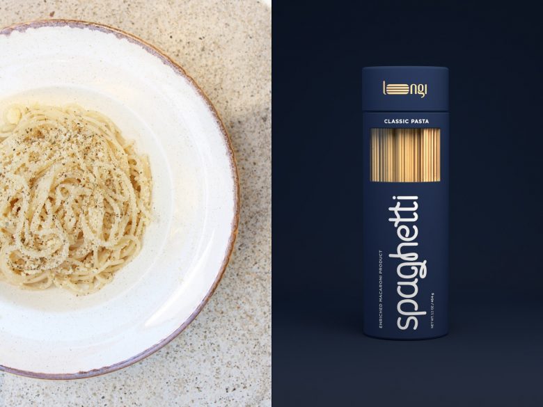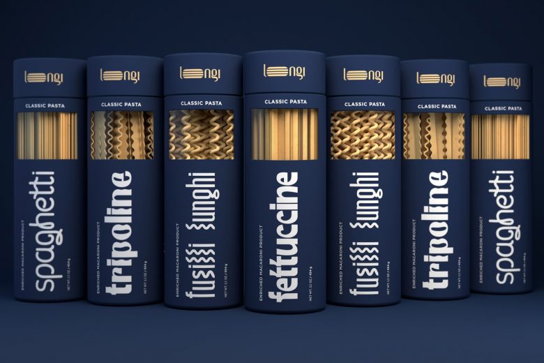 The design of the pasta packaging is with a unique form of packaging. The design seems to be non-destructive of the long pasta, which emphasizes its concept. The brand includes two types of pasta: