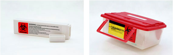 The Food and Drug Administration has cleared these containers for use by health care professionals. These containers are made of material that isn’t punctured and does not release sharps, which means they are safe to handle and dispose of after use.